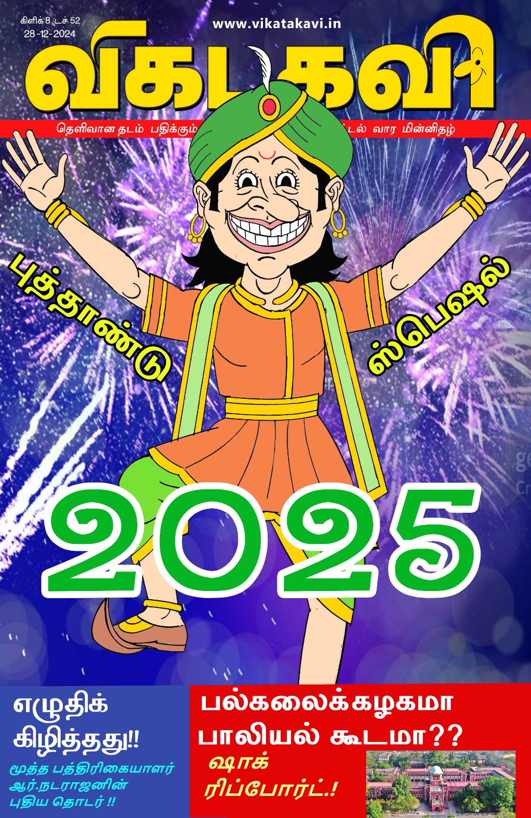 வலையங்கம் பாவப் பட்ட போலீஸ் டாக்டர் மன்மோகன் சிங் “சொல்லணும்னு தோணுச்சு…” 3- என் குமார் 2024 டு 2025 ! – கண்ணாழ்வார் புத்தாண்டு என்னும் புதையல்- இலாவண்யா மணிமுத்து பறவைகள் பலவிதம் – இந்த வாரம் சாம்பல் நிற கூழைக் கடா – ப. ஒப்பிலி எழுதிக் கிழித்தது ! 1 மூத்த பத்திரிகையாளர் ஆர்.நடராஜன் பல்கலைக்கழகமா?!- பாலியல் கூடமா ?-விகடகவியார் 2024-ம் ஆண்டில் சர்ச்சை கருத்துகளால் பிரபலமான பெண் அரசியல்வாதிகள்! -மாலா ஶ்ரீ… Continue reading Vikatakavi This Week