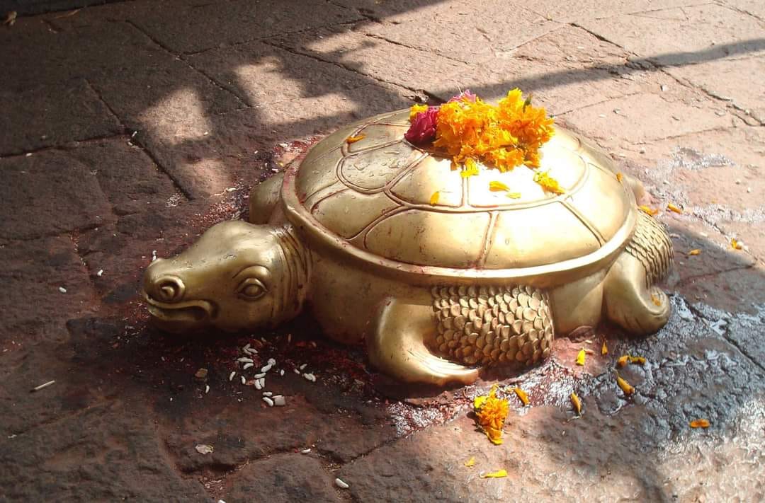 ஆமை ஒன்று ஆற்றைக் கடப்பதற்காக ஆற்றில் இறங்கியது.